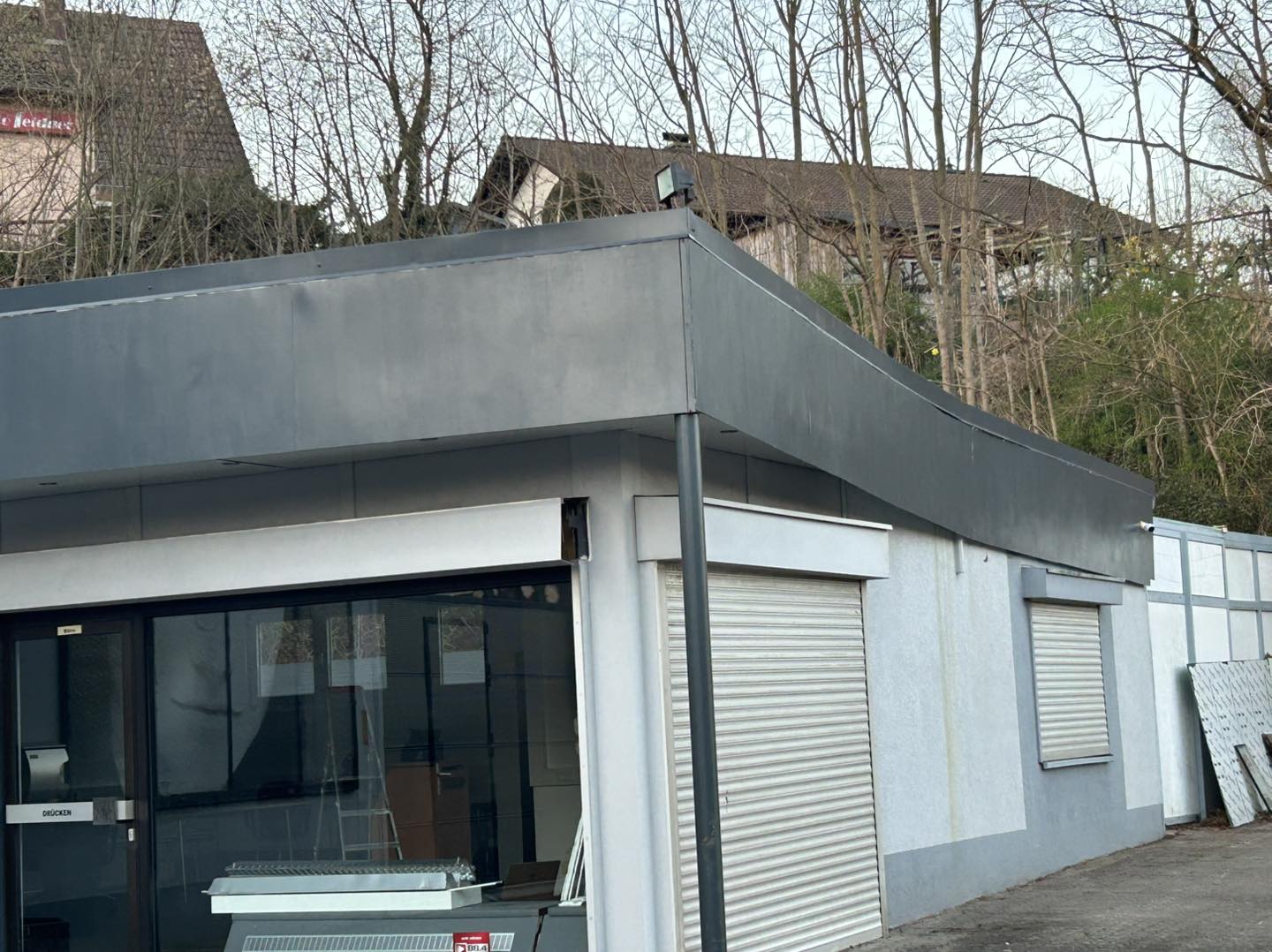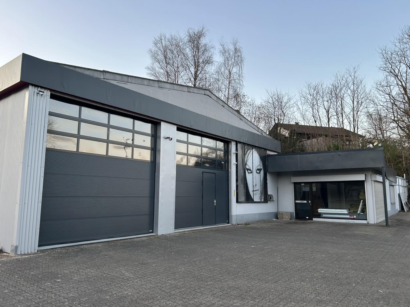Das Gebäude verfügt über eine große Fahrzeughalle und einen Anbau mit mehreren Räumlichkeiten.
