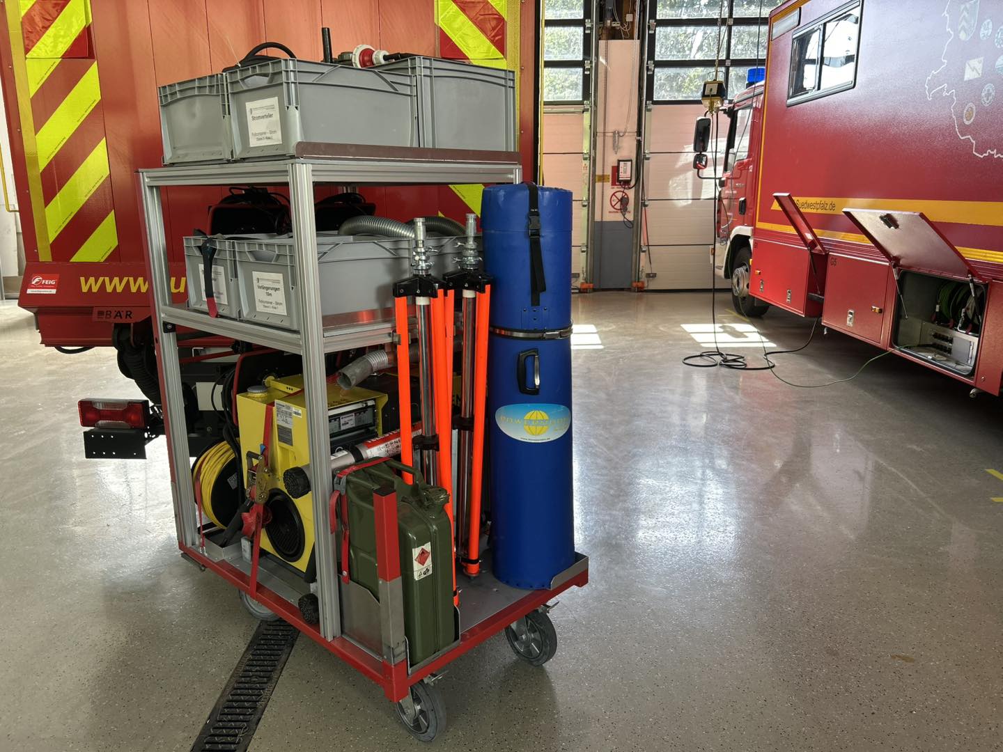 Auf unserem GW IuK ist immer der Rollcontainer Strom verlastet, auf ihm führen wir einen zusätzlichen Stromerzeugung mit. Weiterhin können wir mit drei verschiedenen Beleuchtungseinheiten für uns Bereiche sehr gut ausleuchten.